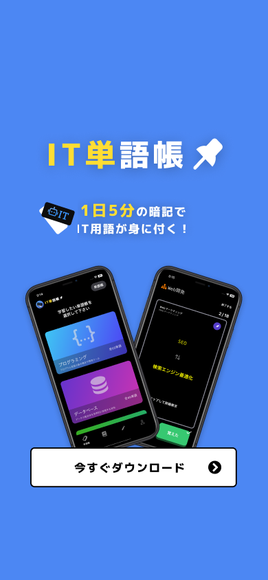 IT単語帳がアプリになりました!モバイルアプリ開発はもちろん、IT業界でよく使う単語をスマホで学習できます。